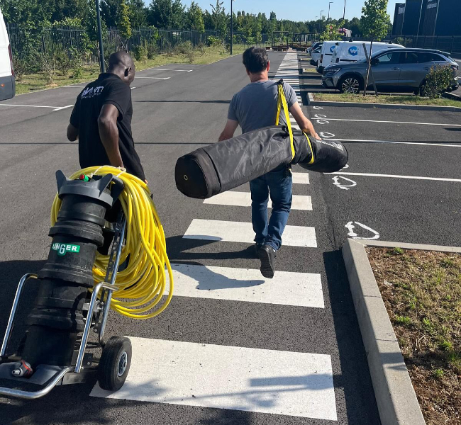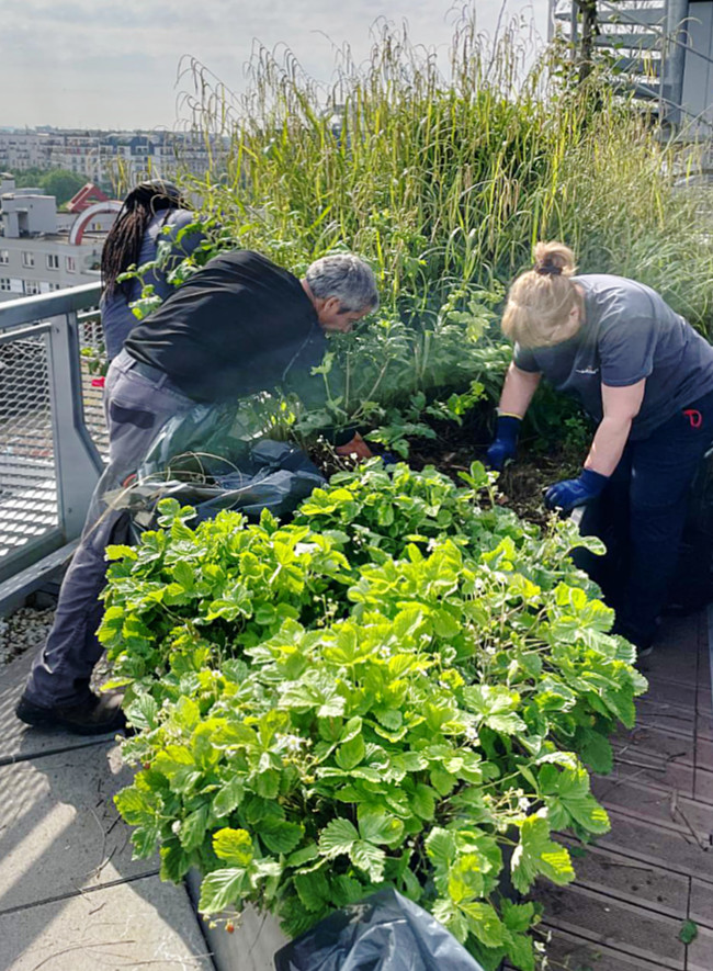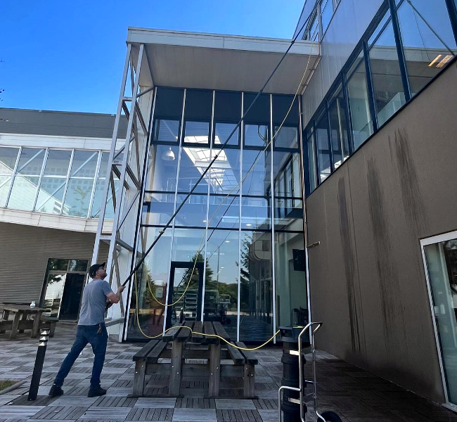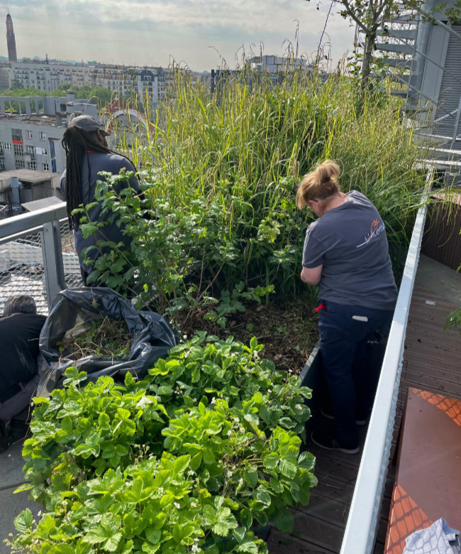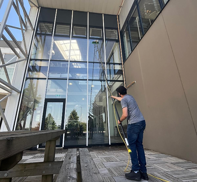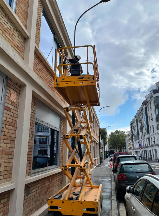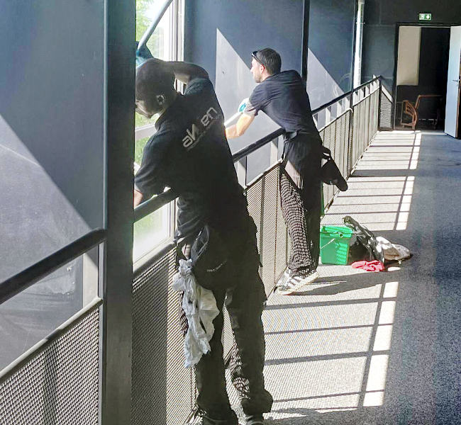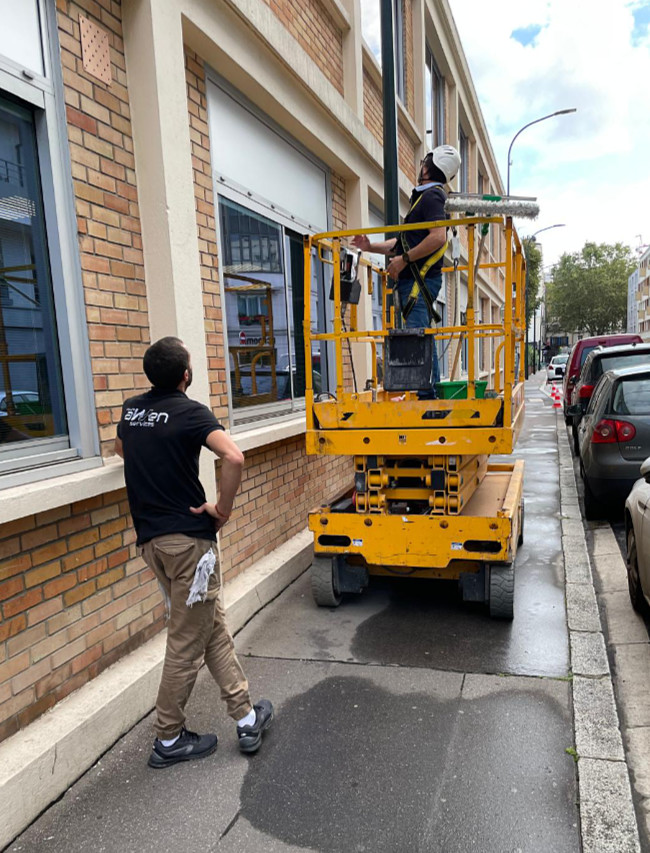 Nos agents en action sur du vitrage de grande hauteur et dans les espaces verts.