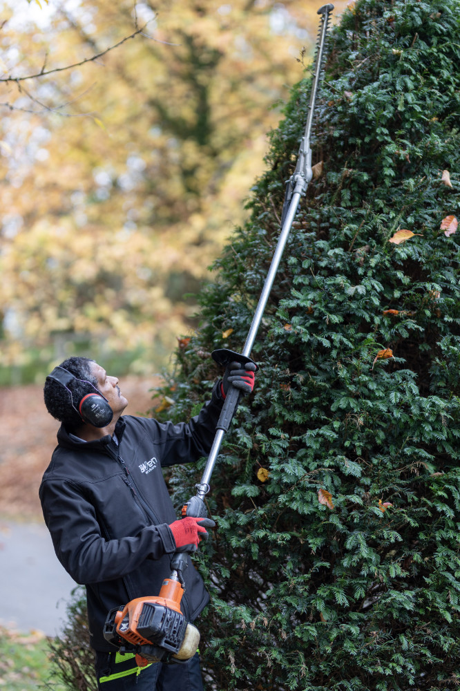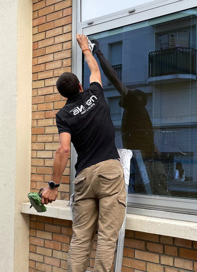 Nos agents en action sur du vitrage de grande hauteur et dans les espaces verts.
