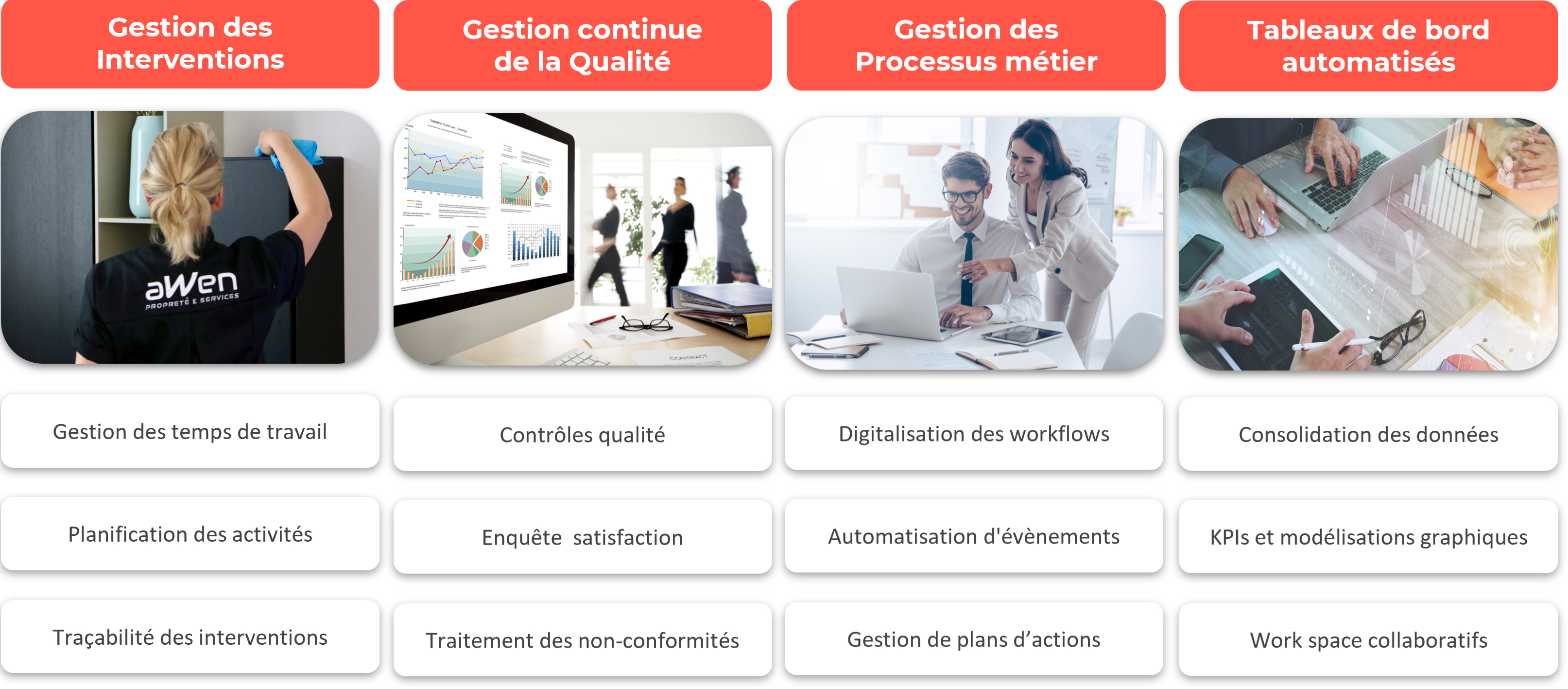 - Traçabilité des taches, planning avec bon intervention et prise de photos